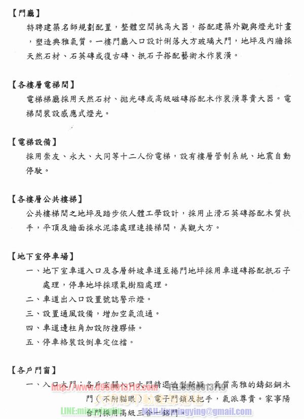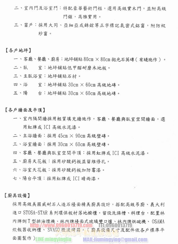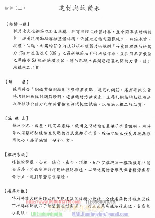 ●詳細建材請看下圖,大明把建商的合約內容所標示的建材清楚給大家明白