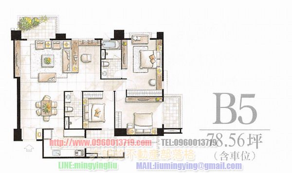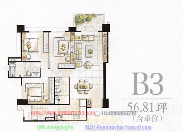 房間規劃:3~3+1房