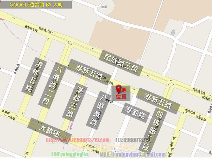 再來是GOOGLE標出來的位置圖–位於港新五路/港都二路/八德東路