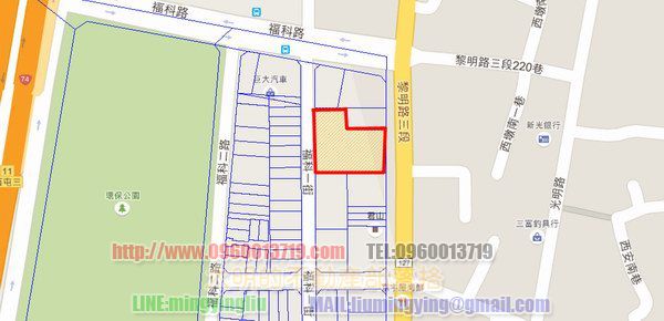 再來是GOOGLE標出來的位置圖–位於台中市西屯區黎明路、福科1街、近逢明街口