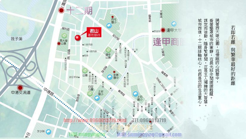 ●台中市西屯區預售大樓「君山」位於12期黎明路,近西大墩公園,住家主力為51~66坪、3~4房