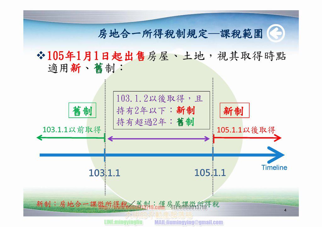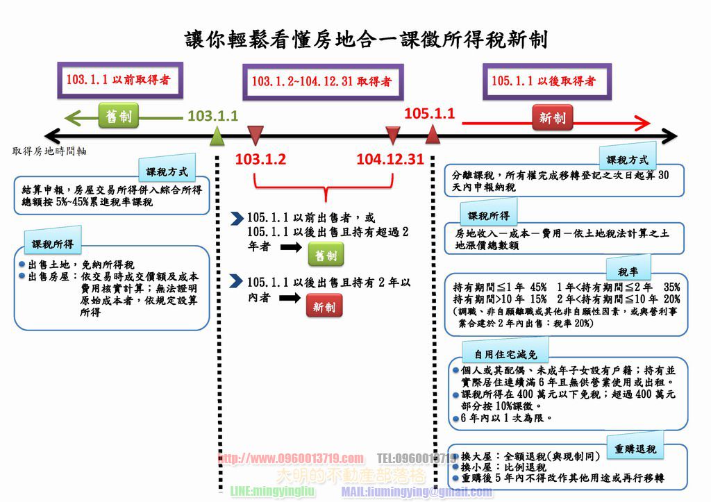 104061012因為房地合一已通過了,今天這一天是讓大家明白一下什麼是房地合一,未來因為還有更多的說明,圖片,影片,大明會整理一下,讓大家讓明白這一個房市政策,這個房地合一上場之後,奢侈稅就會退場了,未來的房市也會穩定了,也不會多變了,所以大家一定要明白房地合一喔~