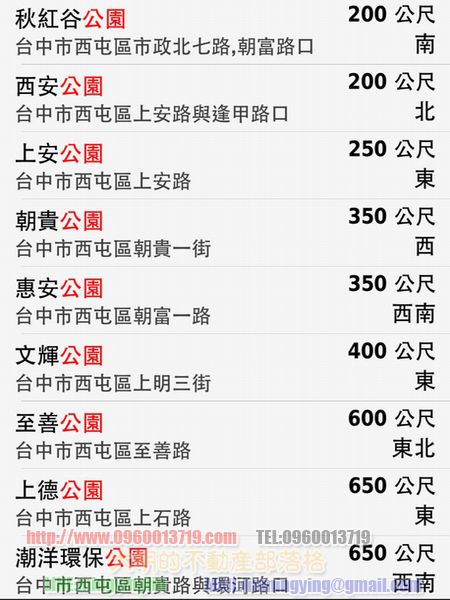 ●附近更是有秋紅谷公園,西安公園,上安公園,朝貴公園,惠安公園等…