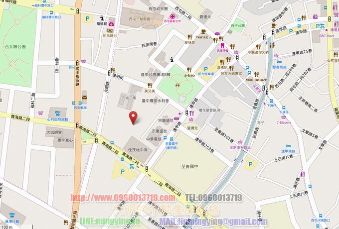再來是GOOGLE標出來的位置圖–位於青海路二段/光明路口/逢明街口