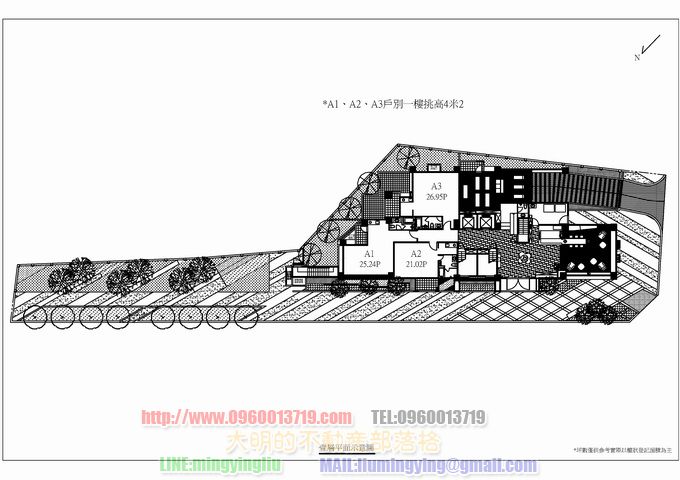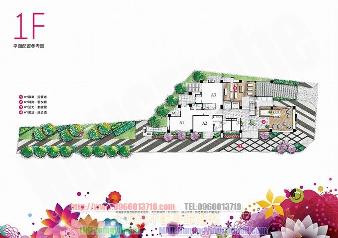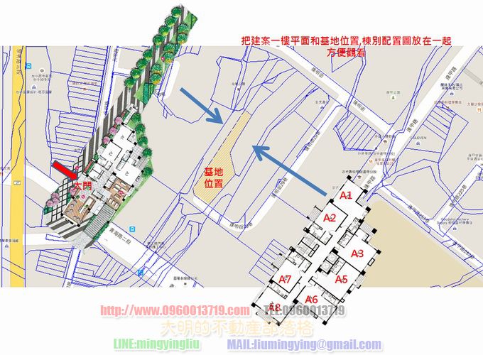 在看建案的平面圖之前,大明先把建案的位置和一樓公設,棟別放在一起