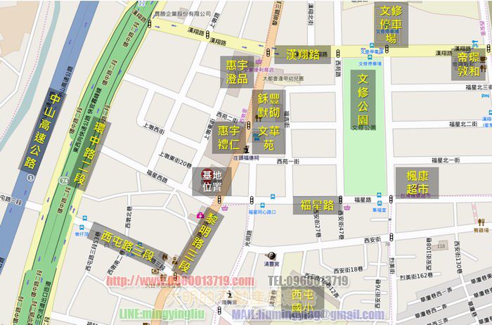 ●臨黎明路三段、福星西路口,黎明路接環中路,可上分別上中山高中清交流道、中港交流道或中彰快速道路等