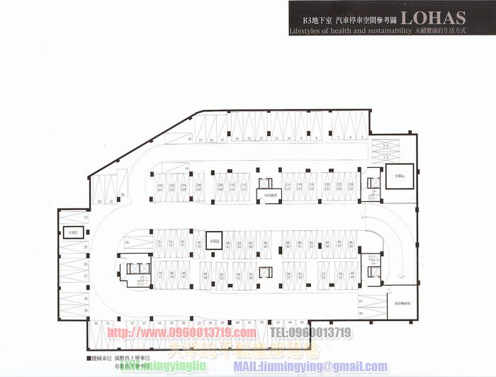 【停車空間平面圖】B1停機車,B2和B3停汽車