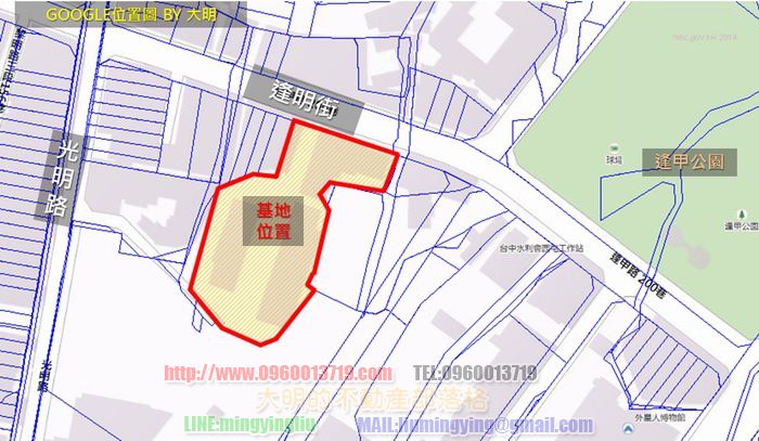 再來是GOOGLE標出來的位置圖–位於逢明街、近逢甲路,鄰近逢甲公園