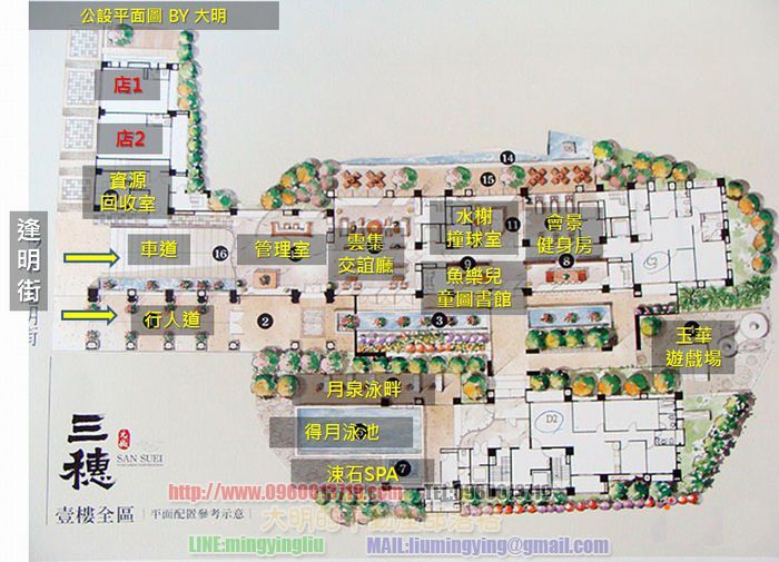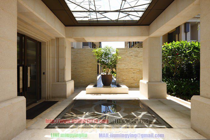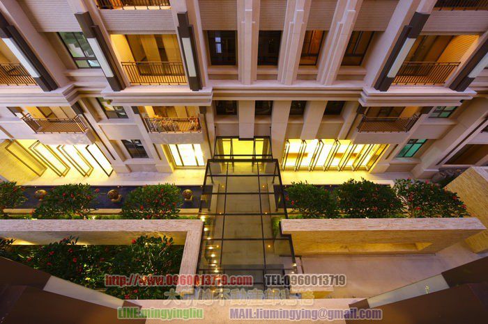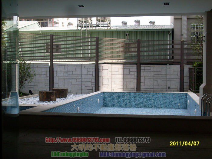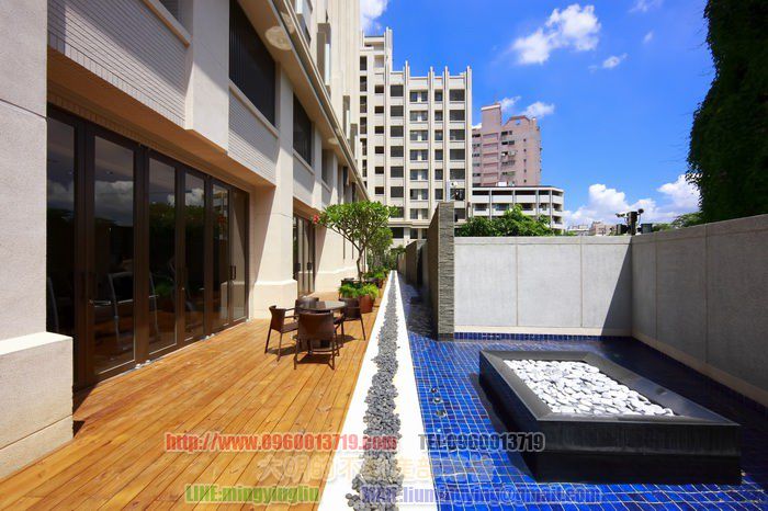 ●中庭有水池、鏤空牆、植栽及游泳池等17項公設