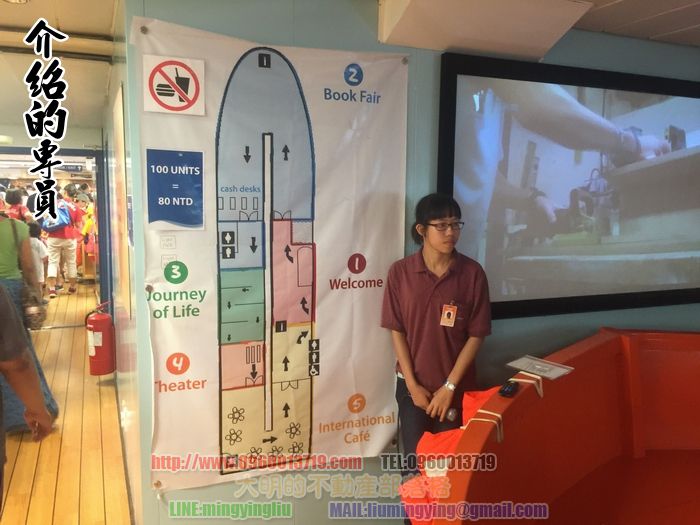 天氣真的很熱,如果想要整艘船都參觀的人,可以約時間,然後花費150元,會有專人導覽,船上書藉雖多,但因為是巡迴世界各地,所以還是以外文書為主,這個告訴我們外文要學好(誤XD),緦之這是一個很特別的體驗,因為多年來才會到台灣一次,雖一可惜的地方就是人真的很多,不然慢慢走,慢慢看書,其實是可以花費很多時間喔~