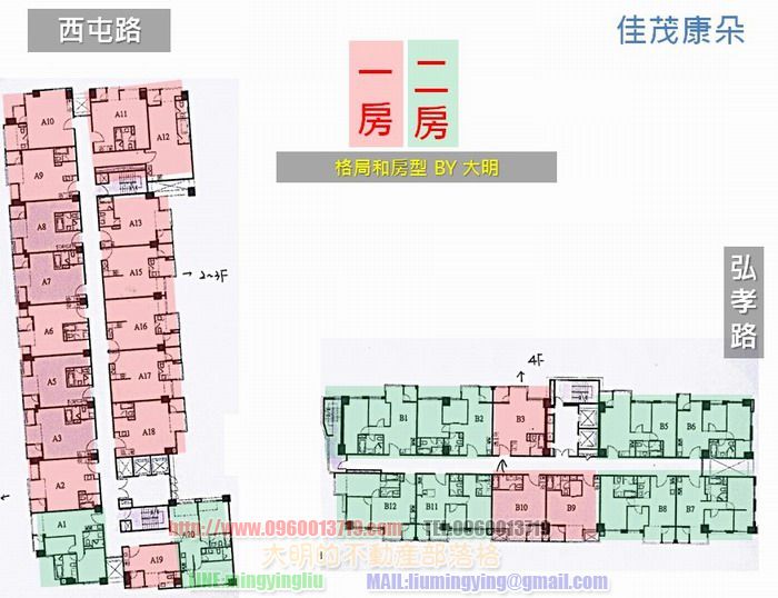 大明把一房二房用不同顏色來區別,可以看到整個社區還是以一房為主的