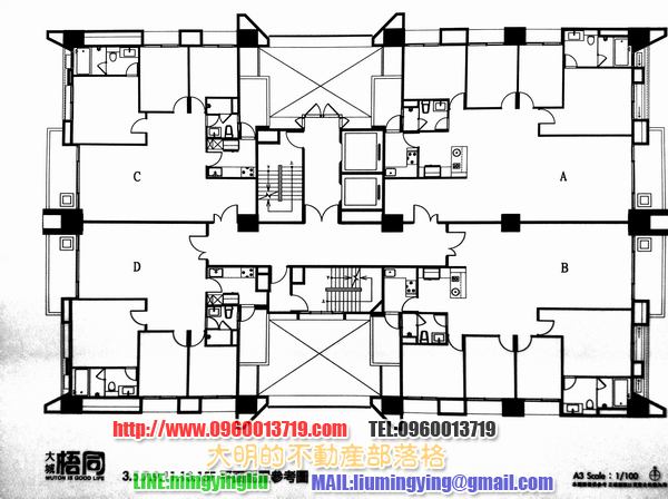 建案的平面圖–AB棟面西苑路,也就是可以看到文修公園