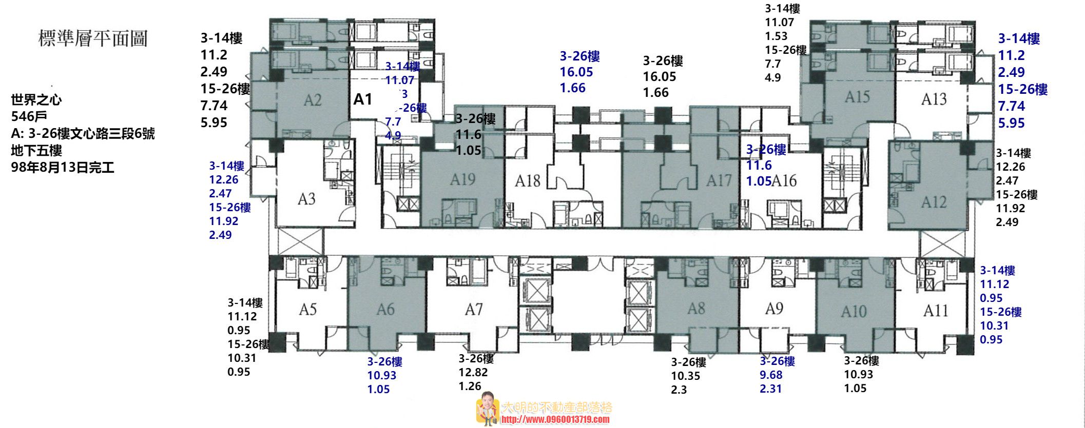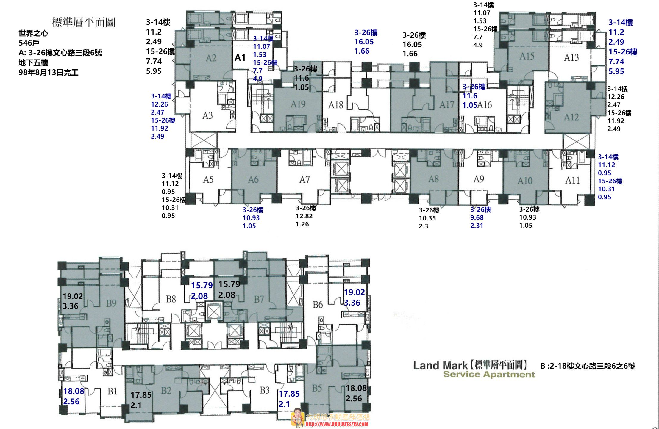 A棟3樓以上、B棟2樓以上為標準層,A棟規劃17~26坪、1~2房格局