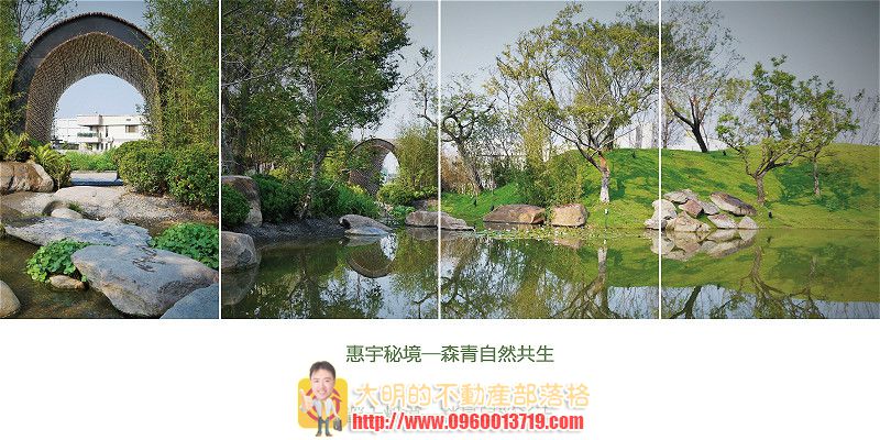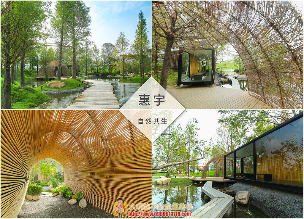 惠宇為強調綠色(Green)、自然(Nature)、人文(People)的GNP理念,型塑高端住宅新視野,特別在基地上規劃生態水景,通過竹編通道後,生態池、綠草、大樹及竹編小屋立刻映入眼簾,吸引許多民眾前往遊玩及拍照,也成為城市的新亮點。