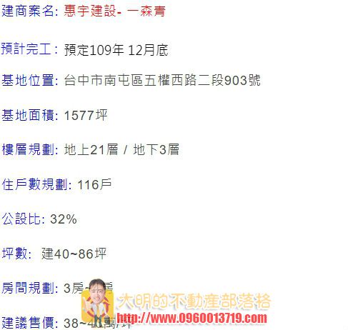 台中知名建商惠宇建設,在台中市單元三規劃推出的「一森青」住宅大樓案,此案還沒公開就已吸引500多組客戶預約看屋,成為市場指標。