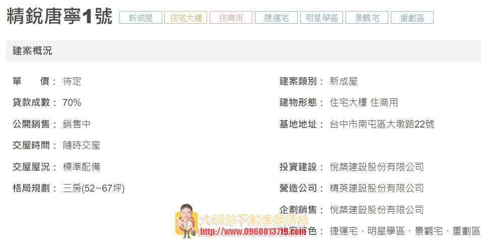 台中市大5期生活機能極佳,一直是房地產市場的最佳選擇,但5期寸土寸金,開發大面積的建案不易,精銳建設花費多年時間,在大墩路上順利整合建地,以英式風格規畫的「唐寧一號」,雙塔式建築,搭配弧形鋁包板造型、及方圓交錯大陽台,向外延伸的空間,猶如兩個客廳的概念,打造生活處處是藝術的英式生活品味。