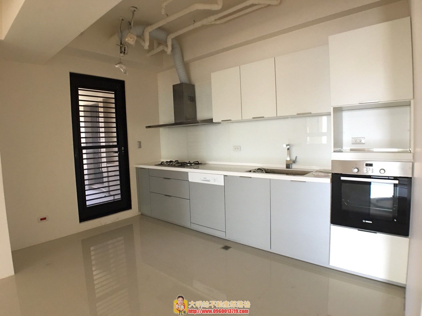 客餐廳、廚房地坪鋪設80公分見方拋光石英磚、臥室鋪超耐磨木地板,廚房附BEST抽油煙機、BOSCH洗碗機、蒸烤爐,主臥衛浴採TOTO電腦馬桶、多功能暖風機