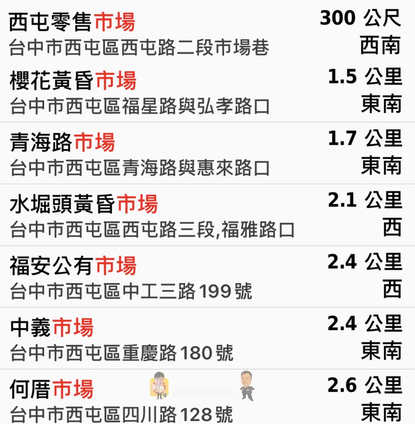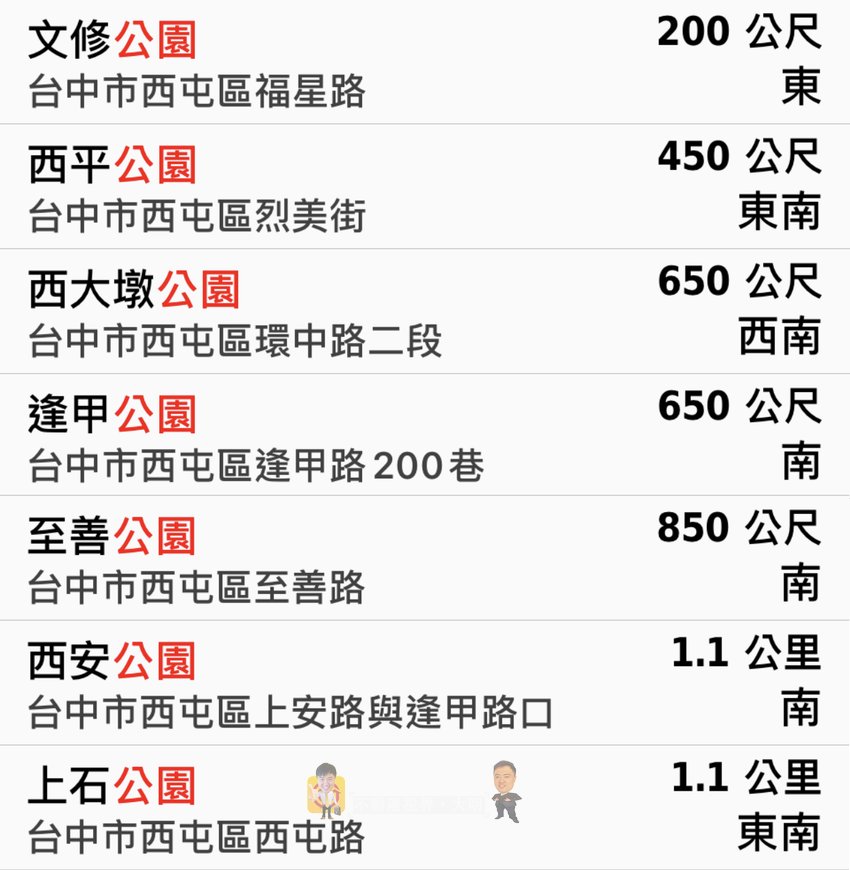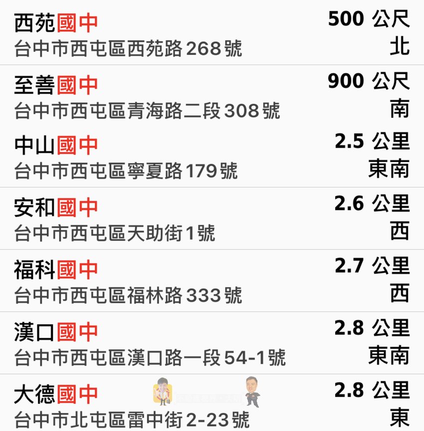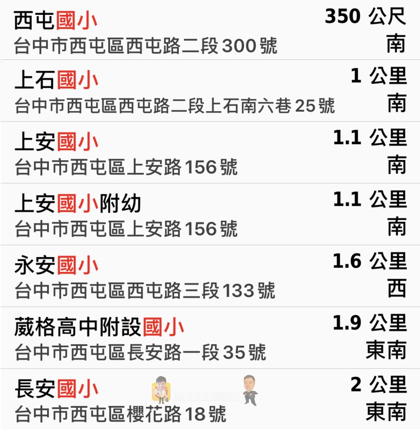 西屯國小,西苑中學,僑光科大,逢甲大學